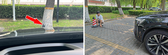 后方视野测试中,依旧将桩桶固定摆放,随后移动车辆直至可以观察到桩桶上沿为止。经实测,后方视野所测得的距离为11.256m,在测试过的同级别车型中处于中上游水平。