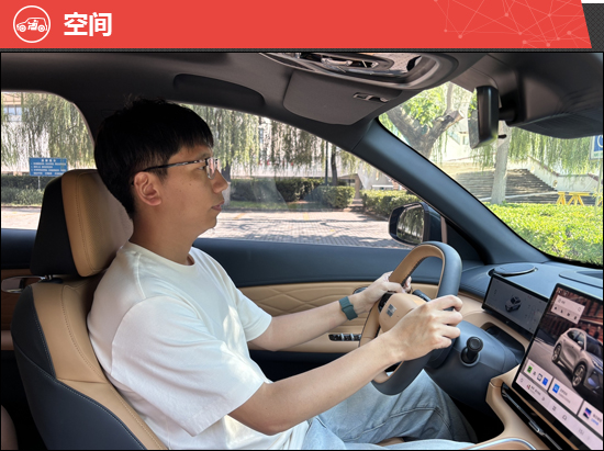在内部感受评价中,2025款吉利银河星舰7 EM-i采用新能源车主流的简洁化设计方案,配备大尺寸悬浮式液晶显示屏,并保留了部分常用功能的实体按键,兼顾科技感与实用性。仪表台和门板区域采用大面积软性材质包覆,触感细腻。双拼色方向盘采用平底造型,有助于改善驾驶员腿部空间。前排手机无线充电板位于空调出风口下方,采用倾斜式设计,拿放手机十分方便,并带有通风散热孔。