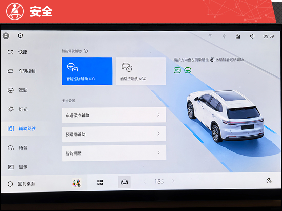 评测车搭载L2级辅助驾驶系统,全速自适应巡航跟车距离支持三档调节,最近档位与前车间距较大,容易被其他社会车辆加塞。