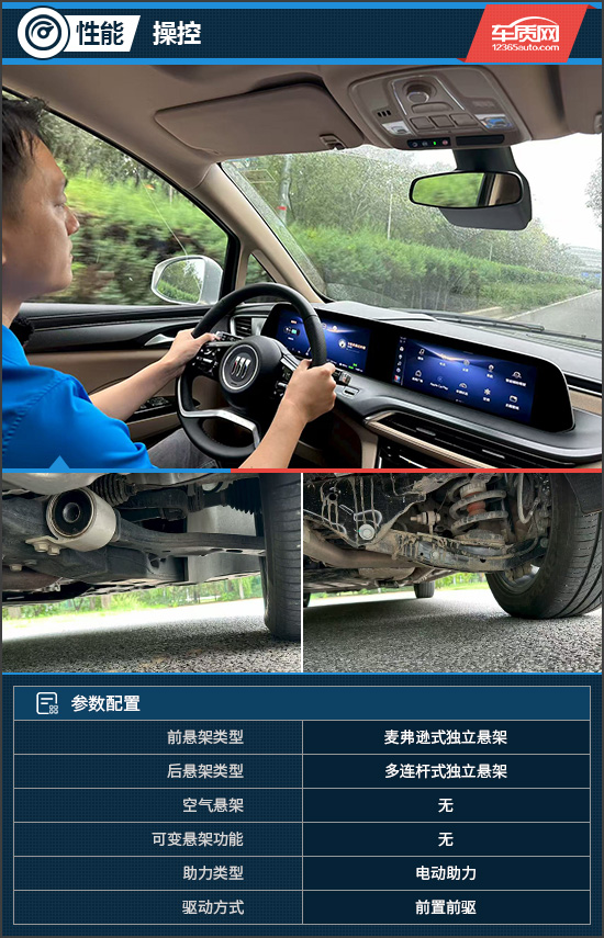 评测车配备了前麦弗逊式独立悬架+后多连杆式独立悬架的组合,调校风格是以舒适为主,对于路面的细碎颠簸可以高效过滤,再加上填充柔软的座椅,车内的乘坐舒适性一如既往的优秀。此外,别克GL8陆尚对底盘的弹性元件重新进行了调配,使其在铺装路面的加速、制动甚至转向能够提供相对充足的支撑性,保证了车身姿态的稳定,也彰显出别克品牌的底盘调校功力。
