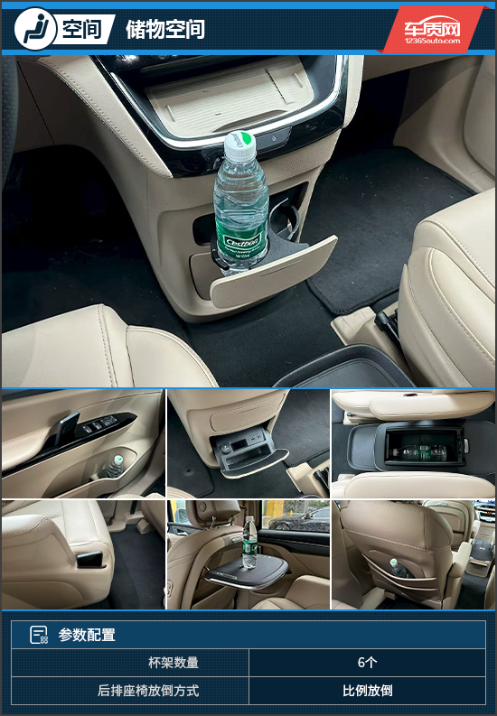 储物空间方面,评测车配备6个杯架,可以很好地满足车内乘客的使用需求。此外,车内还拥有多达34处储物空间,大小物品都能找到合适的位置摆放。