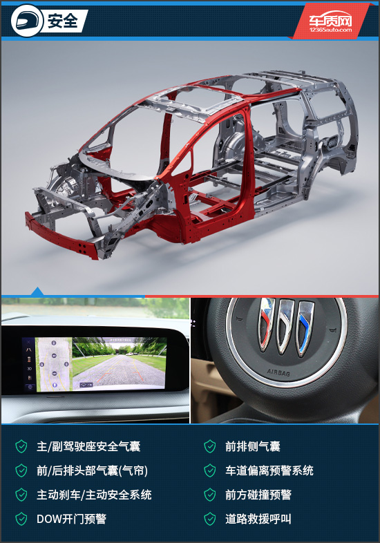 评测车配备了完善的主被动安全配置,包括主动刹车/主动安全系统、前方碰撞预警、主/副驾驶座安全气囊、前排侧气囊、前/后排头部气囊(气帘)等均没有缺席,整体表现十分出众。此外,评测车在看不到的地方也做到了极致,采用了十横六纵笼式铠甲车身结构以及三排高强度钢座椅骨架,保障了每一排乘客的出行安全。
