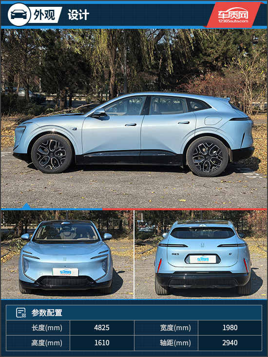 外观方面,评测车整体依旧延续未来美学原创设计理念,蝶翼式前脸由LED星旅式头灯和主动开闭式进气格栅组成,科技味道浓郁。车身侧面线条流畅动感,得益于黄金比例轴长比、轮高比的运用,观感十分协调。车尾看上去非常饱满,黑色的后包围搭配车顶扰流板,营造出很强的视觉冲击力。