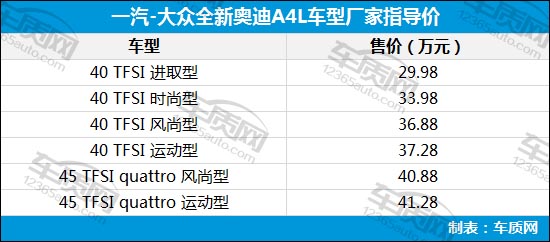 全新奥迪A4L上市 售29.98-41.28万元