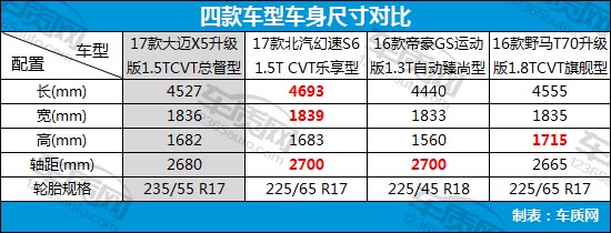 2017款大迈X5依然提供7座车型,虽然外观尺寸并未发生变化,在同级中也称不上是“大块头”,但是车身宽度、高度和轴距却并非劣势,保障了车内人员的驾乘空间与舒适性。值得一提的是,全系车型均更换为17英寸双色轮毂,并提供红色刹车卡钳,大幅提升了视觉冲击力。