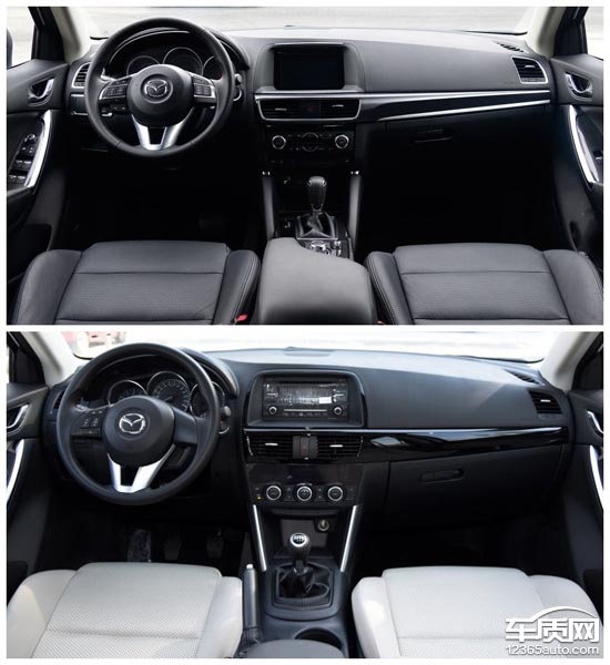 内饰方面长安马自达CX-5 采用两种风格搭配,分别是黑色运动+亚光金属拉丝+亚光镀铬强化装饰和米色温馨内饰+黑色钢琴烤漆装饰。CX-5在内饰方面依旧延续了外观上的魂动设计,整体看上去没有复杂的线条,让人一眼看上去非常的简洁、干净。