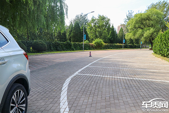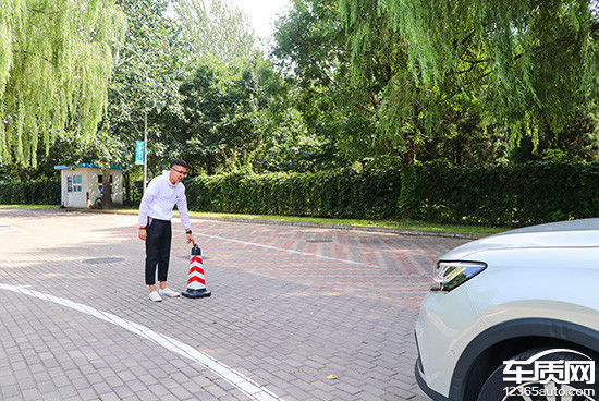 在测试前方视野阶段,我们采用高70cm的桩桶作为参照物,随后调整车距,直至在主驾席可以看到桩桶上沿。