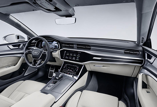 全新奥迪A7 Sportback的内饰依然延续了奥迪的家族式设计,布局简单合理,科技感十足。中控部分硬朗的轮廓与其外观的设计十分吻合,一体性很强。