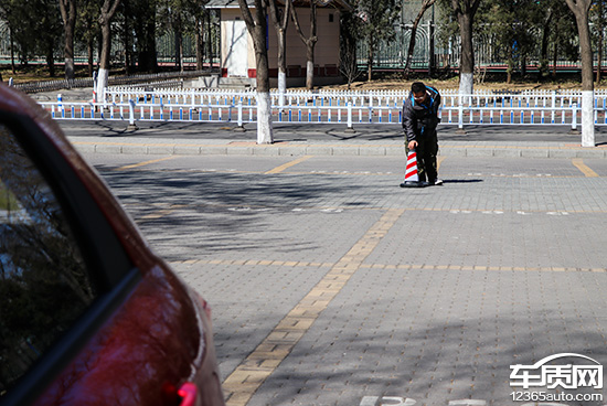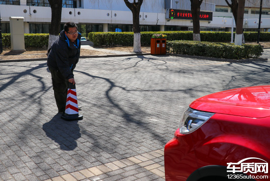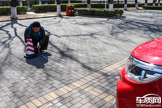 在测试前方视野阶段,我们采用高70cm的桩桶作为参照物,随后调整车距,直至在主驾席可以看到桩桶上沿。