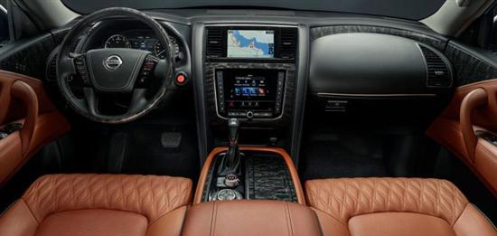 内饰方面,新车与现款车型差异较大,看上去更加豪华。车门内侧和座椅均采用菱形缝制真皮材质,而褐色的设计灵感则来源于旗下跑车GTR。中控搭载了两块触控屏,上方可显示地图信息,下方则为多媒体娱乐系统,同时支持Apple CarPlay和Android Auto。