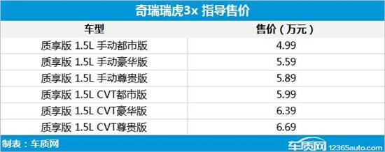 奇瑞瑞虎3x质享版上市 售4.99-6.69万元
