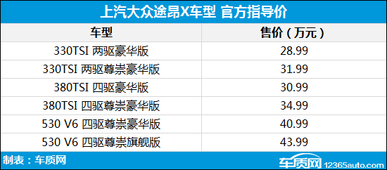 4月16日,上汽大众新款途昂X正式上市。新车定位为中型轿跑SUV,并针对配置进行了调整。同时,官方还宣布目前购车的消费者还可以享受3年无忧保养等优惠政策。此次上市新车共推出6款车型,售价区间为28.99-43.99万元。