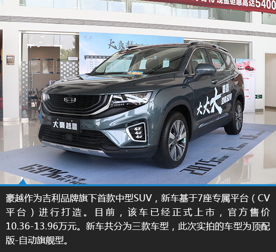 此前,在吉利豪越还未上市之际,我的同事已经对该车进行了图解详细说明(文章链接在此:家族SUV扛鼎之作 吉利豪越新车图解)而如今,豪越已于6月23日正式完成上市,同时,新车也已登陆北京各家4S店。编辑第一时间前往经销商处拍到了实车照片,本文将重点从实际乘坐体验以及感受角度对豪越进行分析。