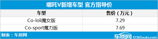 6月22日,哪吒汽车官方宣布旗下哪吒V新增两款定制版车型,新车命名为Co-loli魔女版和Co-sport魔力版,售价分别为7.29万元和7.69万元。两款车型均基于现款哪吒V打造而来,并根据用户需求进行了个性化的升级,最快将于8月份交付。