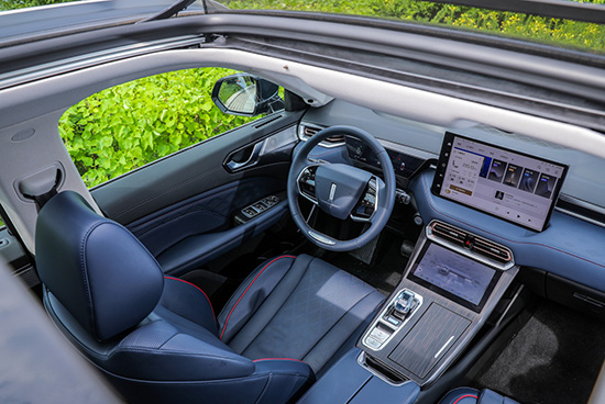 内饰方面,新车同样与拿铁DHT保持高度一致,9.2英寸全液晶仪表+14.6英寸中控屏+9英寸空调触控屏的搭配,大幅提升了车内科技感。同时,新车在中控台和车门内侧均采用了大量软性皮质包裹,视觉和触觉都得到了很好地提升。