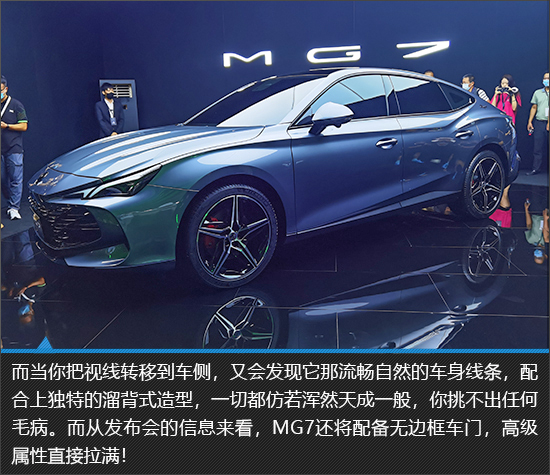 提起MG品牌,大家脑海中第一个想到的词是什么?年轻?运动?的确,从MG品牌近年发布的车型来看,每款车型都与这两个词有着脱不开的联系。而就在8月17日,MG品牌再次发布了一款全新车型,即MG7。和MG品牌其它车型一样,这台车同样拥有着极具视觉冲击的外形设计,不过,在这台车身上,我发现到了另一种感觉——优雅。