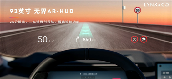 该车配备了全液晶仪表盘、15.4英寸悬浮式中控屏和业界最大的92英寸HUD抬头显示,分辨率达到了2K,支持三车道级别导航、眼球追踪功能,科技氛围浓厚,多功能方向盘还是领克的家族风,不过细节方面做了升级和改动,隐藏式空调出风口完美融入中控台,T型台设有无线手机充电面板,此外并无多余的实体按键。
