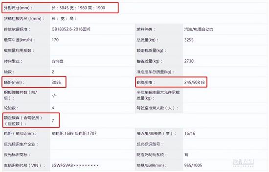 另外,选装申报图中还展示了3个不同的尾标信息,推测为这款MPV不同版本的车型,当然也有可能是“烟雾弹”。