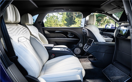 由于是加长轴距版,所以该车标配了宾利航空级座椅套件,后排双独立座椅具备22向可调节功能以及自动温度感应和舒逸按摩功能,自动温度感应功能可感知乘客体温和体表湿度,进而自动调节座椅的加热通风功能,确保乘客全程保持舒适愉悦的乘坐状态。