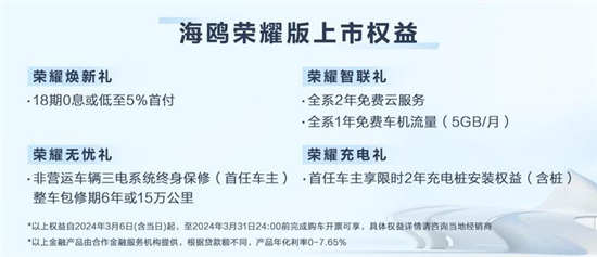 此外,购车还有多重福利政策提供给消费者,分别是荣耀金融礼、荣耀焕新礼、荣耀无忧礼、荣耀智联礼以及荣耀充电礼(详情请咨询当地经销商)。