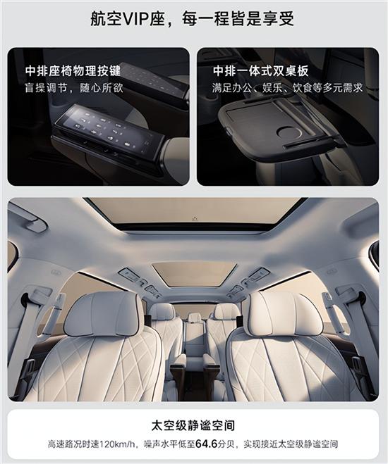 与老款相比,车内进行了7大升级优化,包括全系标配防夹电吸门、二排触摸屏升级为6.0英寸、二排增加座椅物理调节快捷键、二排双小桌板、防污流媒体后视镜、升级压缩机式7.5L冷暖冰箱,支持锁车保温12小时、副驾升级高低调节+4向腰托等。同时新车多功能方向盘的按键也升级为了实体按键,大幅降低了误触几率,提升操作体验。