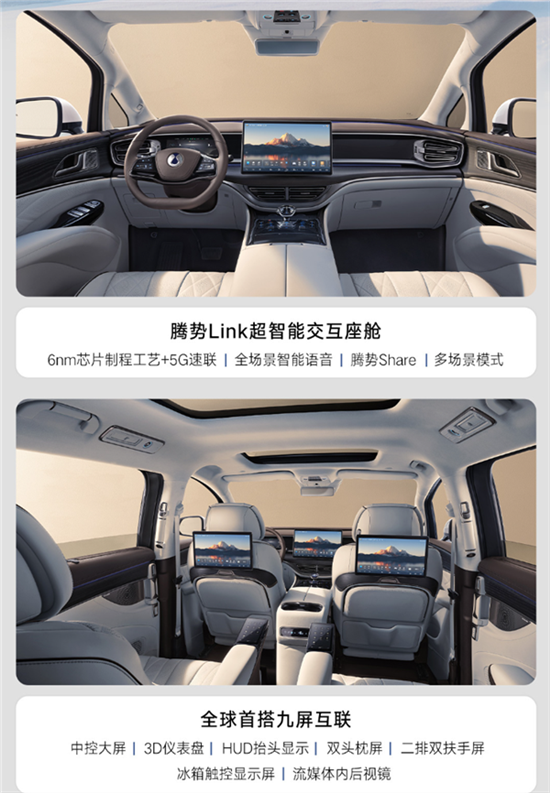 外观方面,新车与老款车型保持一致,并且依旧推出纯电版和增程混动版两种动力车型,其大尺寸点阵式镀铬格栅搭配犀利的头灯组,视觉效果十分大气。新款腾势D9外观部分并未有太大变化,主要对配置部分进行了升级。
