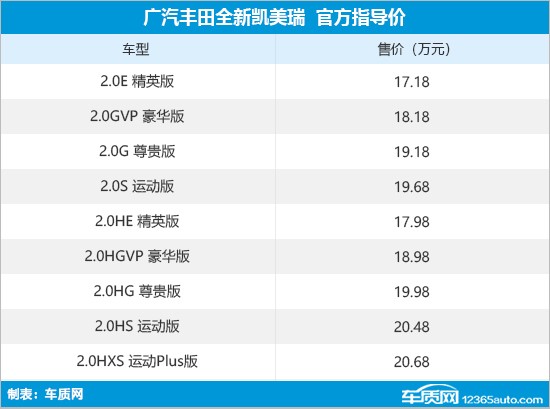 3月6日,广汽丰田全新凯美瑞正式上市,厂商指导价17.18-20.68万元,此次上市车型提供2.0L汽油版,2.0HEV电混双擎两种动力,提供9款配置车型可选。根据计划,现在下订用户,最快4月可以提车。