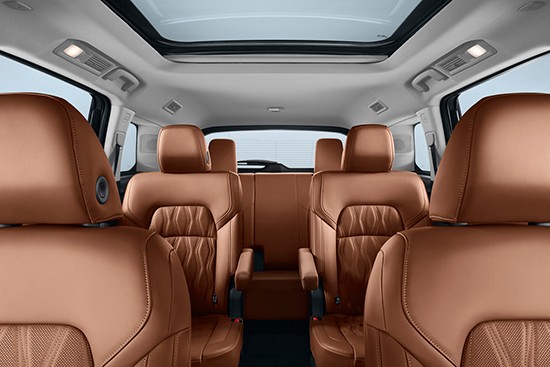 侧面线条舒展流畅,车身比例较为修长,相对平直的车顶线条确保了充足的第三排乘坐空间。此外,轮圈采用了双色密辐式设计,有助于提升整车空气动力学表现。尾部造型较为简洁,两侧狭长的尾灯采用黑色饰板连接,拉伸了视觉宽度。后包围同样配备了大面积黑色饰板,并采用了隐藏式排气布局。