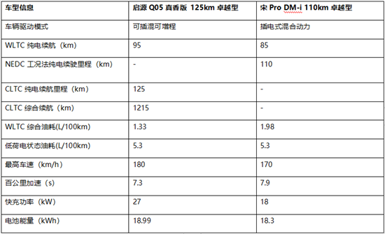 而长安启源Q05真香版顶配车型续航达到125km,WLTC纯电续航里程为95km,综合航里程高达1215km,WLTC综合工况百公里油耗1.33L。不难看出,启源Q05真香版顶配车型续航、能耗和百公里油耗方面的表现,均远超比亚迪宋Pro DM-i顶配车型。