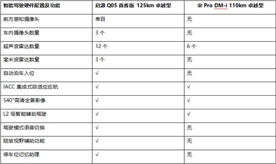 不过,启源Q05真香版的智能化硬件配置比宋Pro DM-i更丰富。Q05配置3个毫米波雷达,12个超声波雷达,3个车内摄像头以及前方感知摄像头,使得Q05的智能驾驶能力远超宋Pro DM-i。