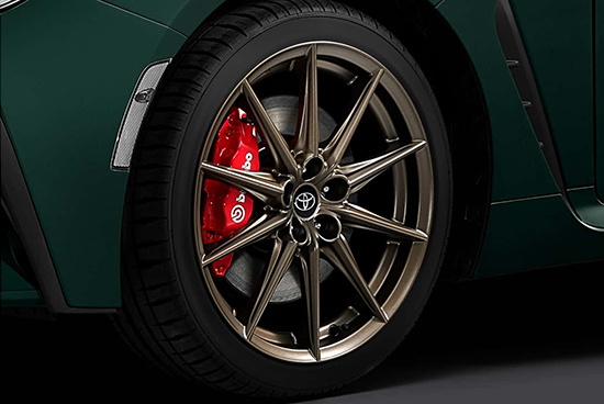 新款丰田GR86的外观设计变化不大,仅对LED日间行车灯进行了微调。同时推出的箱根特别版车型则有着独特的全新风格,包含绿色涂装、18英寸青铜色轮圈、Brembo制动系统以及Sachs减振器等配置。