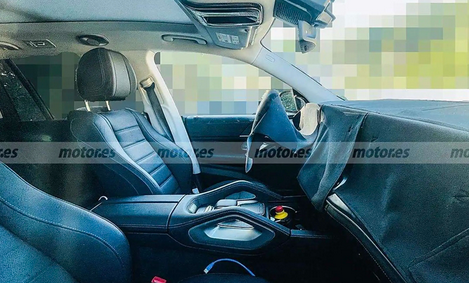 从谍照中可以看出,新款AMG GLS 63的测试车在前灯组和前机舱盖前端进行了伪装,这表明新车可能采用奔驰家族最新的灯组设计。