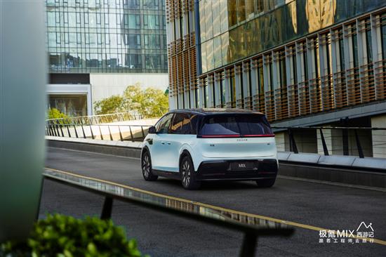 新车侧面同样采用较为简洁的设计风格,多辐双色式的轮毂造型更显时尚。此外,新车采用了隐藏式车门把手,并采用双色车身,熏黑的车顶营造出悬浮式车顶的视觉效果。另外,极氪MIX还可选配激光雷达配置。车尾部分,新车尾部造型设计与前脸保持一致,细长的贯穿式尾灯组同样极具辨识度,下方大面积熏黑后包围运动感十足。