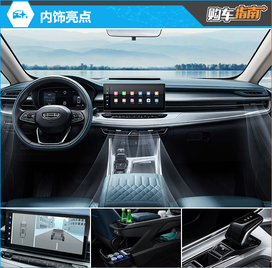 内饰方面, 2025款吉利嘉际采用流水山涧舒享座舱,整体简约且温馨。提供“群青蓝”(鹏程版)和“画眉棕”(龙腾版)两款主题内饰颜色。车内提供众多储物空间,包括6个杯托、10个挂钩和9个手机存放处等。副仪表台采用双层复式结构设计,拥有近1米长的贯穿式储物空间。10.25英寸液晶仪表+12.3英寸智能高清中控屏画质清晰,配备4G流量、WiFi热点和AI语音智能控制,整体科技感全面提升。