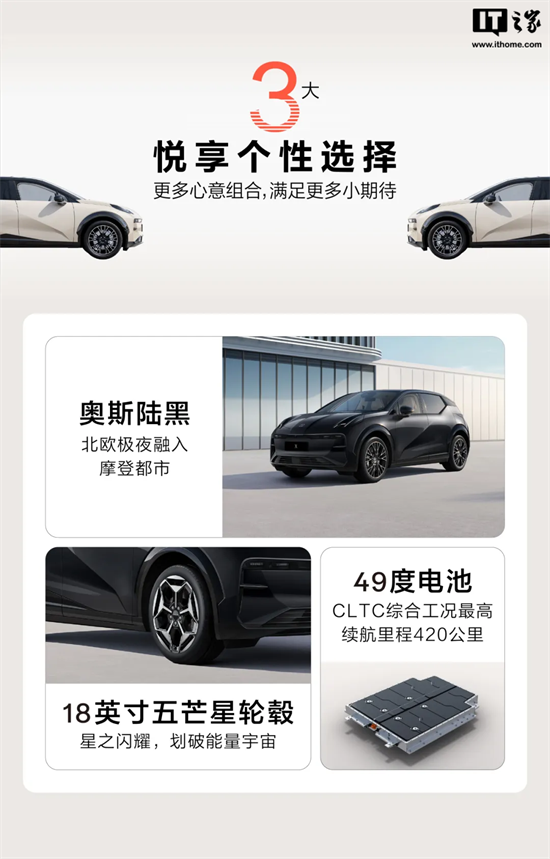 外观方面,新车延续了现款车型的造型设计,扁平的矩阵式LED投射大灯藏于格栅之中,营造出十足的未来感。侧面配备18英寸五芒星轮圈、隐藏式门把手以及无框车门等设计,看起来更具科技感。尾部采用当下流行的贯穿式尾灯设计,并在中间位置加入ZEEKR品牌标识,进一步提升辨识度。此外,新车还增加了奥斯陆黑外观配色可供消费者选择。