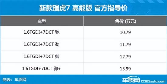 11月1日,奇瑞旗下新款瑞虎7高能版在安徽芜湖正式上市,新车提供燃油版(瑞虎7高能版)和插混版(瑞虎7 C-DM)两种动力共7款车型,官方售价区间为10.79-14.29万元。此外,新款瑞虎7 PLUS也迎来上市,共推出4款车型,官方售价区间为9.99-12.99万元。在12月31日前下订新款瑞虎7 PLUS或新款瑞虎7高能版,可享至高41000元五大购车礼,下单新款瑞虎7 C-DM,可享至高36000元五大购车礼。