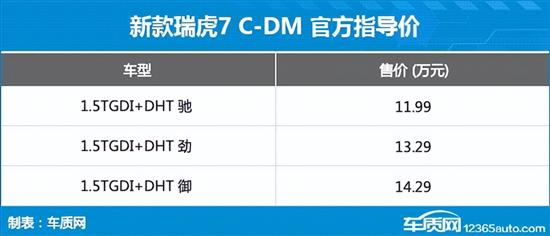 动力系统方面,新车有插混版(瑞虎7 C-DM)和燃油版(瑞虎7高能版)可选,其中插混版车型搭载1.5T发动机与电机组成的插电混动系统,1.5T发动机最大功率为115kW;燃油版车型搭载1.6T发动机,最大功率为145kW,匹配7挡双离合变速箱。