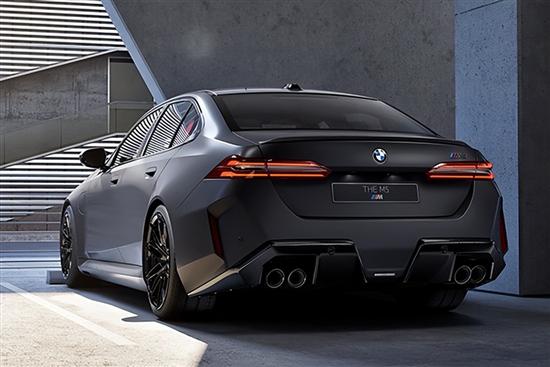 全新宝马M5采用与宝马5系相同的大尺寸双肾式进气格栅设计,内部进行黑化处理,并配备环绕式LED灯带,运动感与科技感兼备。格栅内部专属的M标识以及造型犀利的前包围则彰显其性能车的独特定位。侧面配备大量黑色高光外观组件,进一步强化运动特性。尾部采用双边共四出的排气以及大尺寸扩散器设计,战斗气息十足。