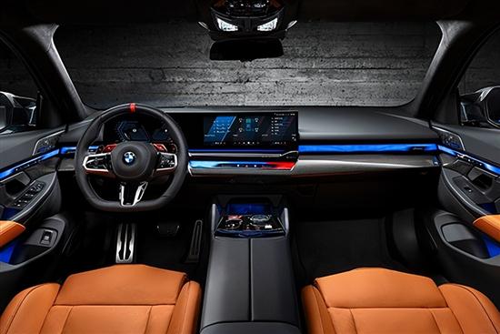 全新宝马M5的内饰采用黑色作为主基调,辅以大量红色装饰元素,彰显出鲜明的运动感。中控台采用12.3英寸全液晶仪表与14.9英寸触控屏组成的双联屏设计,满足车内娱乐与智能化交互需求。M多功能座椅采用黑棕拼色设计,具备不错的包裹性。配置部分,新车配备M座椅加热、宝华韦健音响系统,并可选装Alcantara车顶内衬、M碳纤维外部套件、座椅通风等。