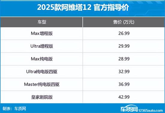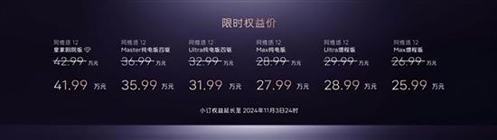 11月2日,新款阿维塔12增程版和纯电版改款车型正式上市,此次共推出6款车型,售价区间为26.99-42.99万元,限时权益价售价区间为25.99-41.99万元。其中,增程版车型CLTC纯电续航里程245km,综合续航里程可达1155km;纯电版车型更换了全新电机。