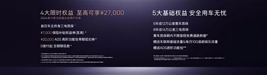 与此同时,针对本次全新阿维塔12的上市,阿维塔还推出了重磅购车礼遇,至高价值可享27000元。2024年11月13日前大定用户可享:首任车主终身三电质保、至高7000元保险补贴券、20000元ADS高阶功能包等额抵扣券、0首付全期限低息四大限时权益。此外,还可享5大基础权益:5年或12万公里整车质保、8年或16万公里三电质保、整车质保期内不限里程免费道路救援、赠送车联网基础流量和每月10G座舱娱乐流量、赠送ADS进阶功能包。
