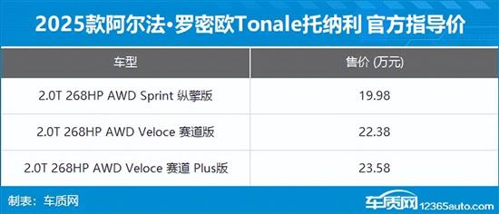 12月23日,车质网从官方获悉,阿尔法·罗密欧针对Tonale托纳利车型推出蛇年限定礼遇,调整后的售价区间为19.98-23.58万元。