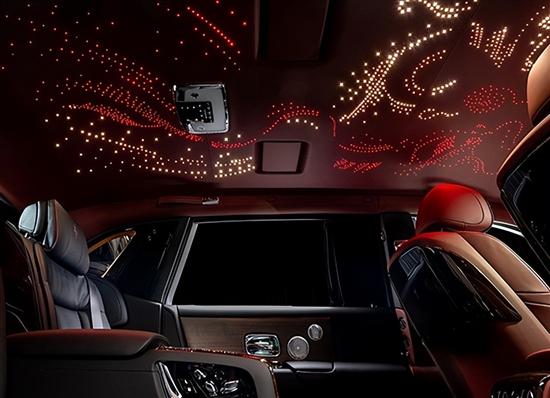 相比外观,内饰是新车变化的重点。中控台配备专属的中国龙图案,由297块手工打造的木质饰片贴合而成,尽显东方格调的奢华氛围。劳斯莱斯标志性的星空顶由1200多盏光纤灯组成,排列出红白两条龙的图案。后排小桌板镶嵌了不锈钢制成的中国生肖日历,每个生肖都用汉字体现,龙字采用金色设计。同时,新车还采用专属的Ardent深红色皮革,座椅头枕上手工缝制了车主的姓氏。