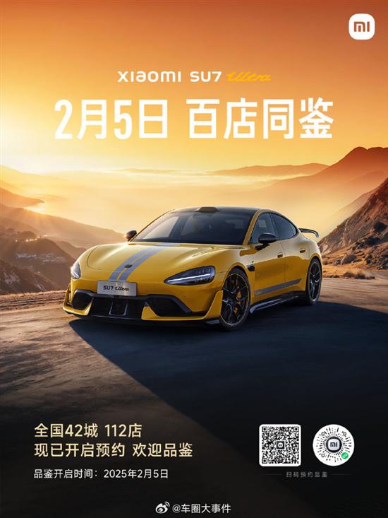根据此前公布的消息,小米SU7 Ultra计划于2025年3月正式上市。而在2月4日,小米汽车官方表示,小米SU7 Ultra将于2月5日起在全国42城112店正式开放静态品鉴。