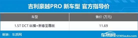 2月8日,吉利豪越PRO新增一款“纵横+新春至尊版”车型,新车售价11.69万元。相比老款顶配车型,主要增加了部分配置,提升了性价比。