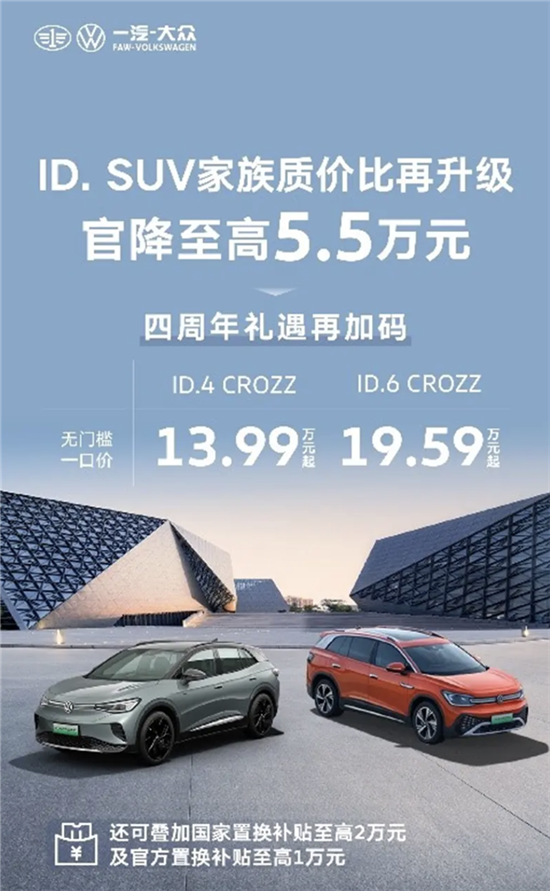 此次降价活动覆盖ID.4 CROZZ 2025款和ID.6 CROZZ两款车型。