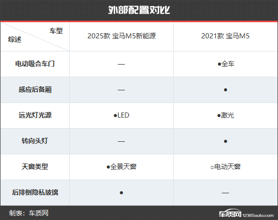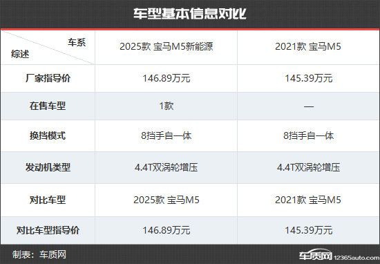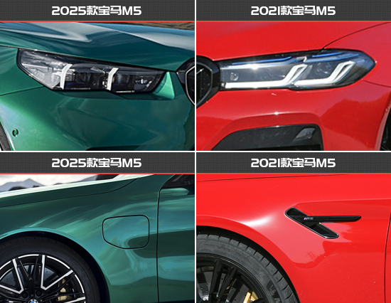 2025款宝马M5(以下简称新款)只推出了1款车型,官方指导价为146.89万元。相比2021款宝马M5(以下简称老款)的145.39万元,增加了1.5万元。虽然售价更高,但在动力系统、配置等方面都有不少提升。从车型数量上看,新老款车型均只有1款配置,尽管新款车型日前已确定会提供旅行版本,但能否进入中国还尚不知晓。所以,本次我们就直接针对这两款车型进行对比,以便直观展示出新老款车型在各方面的差异,为您购车提供帮助。