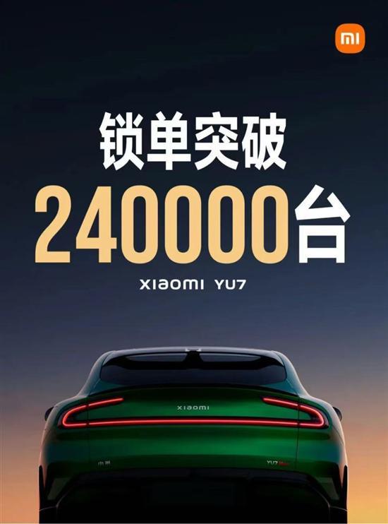 开售18小时 小米YU7锁单量已破240000台