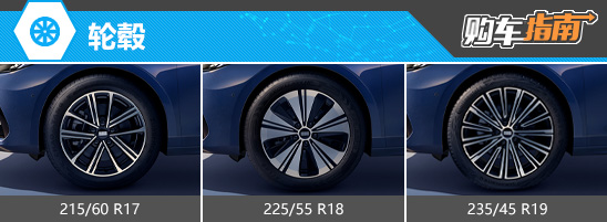 轮毂方面,吉利银河A7提供三种样式可选。70km版本配备17英寸多辐铝合金轮毂,搭配215/60 R17轮胎;顶配车型则升级为19英寸多辐豪华铝合金轮毂,匹配235/45 R19马牌轮胎,视觉效果最为出众;其余车型均采用18英寸低风阻轮毂,轮胎规格为225/55 R18;