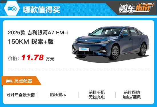 推荐150km 探索+版 吉利银河A7购车指南